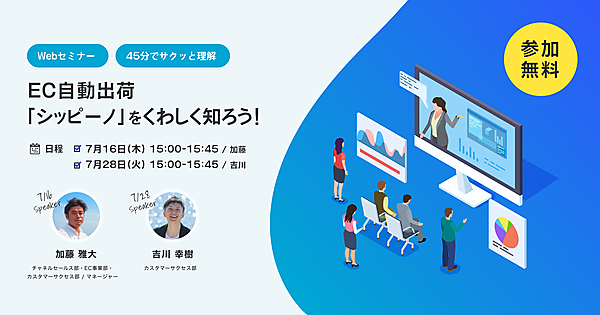 EC出荷の自動化ツールを提供するシッピーノ株式会社は、45分のWebセミナー(ウェビナー)を7/28(火)に開催します。