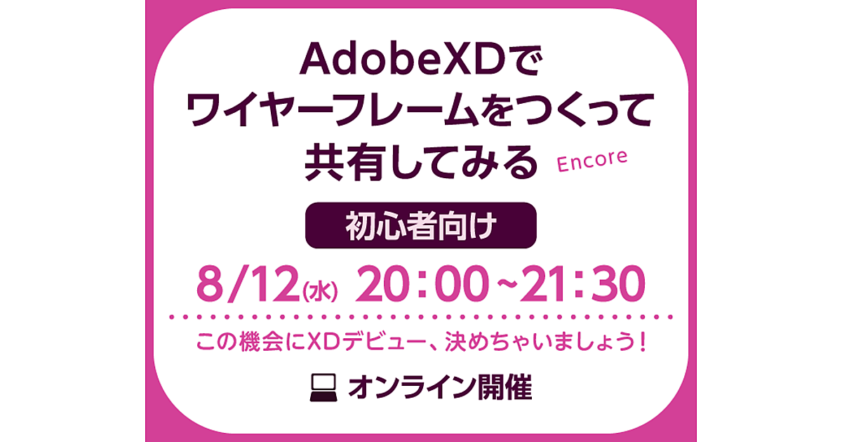 | 20:30〜21:30 | AdobeXDハンズオン:操作説明〜WF制作〜共有 |