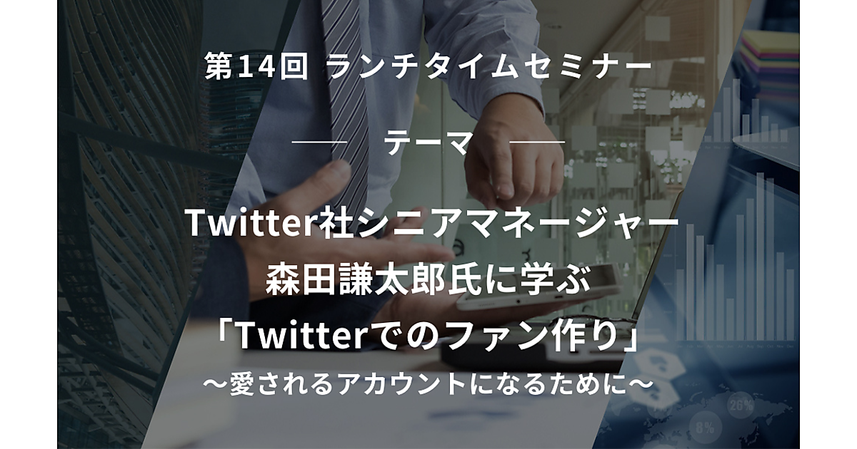 今回は、「Twitter社シニアマネージャー・森田謙太郎氏に学ぶ、『Twitterでのファン作り ~愛されるアカウントになるために~』」をテーマに、Twitterのビジネス活用術について、基本的な考え方・細かな工夫の重ね方、事例を例にあげながら解説いたします。
