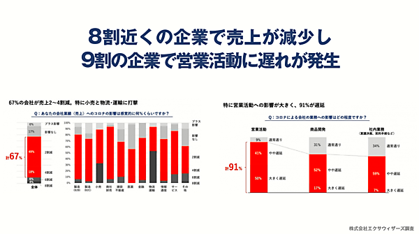 今年2月頃から影響が出始め、緊急事態宣言が終わった今も影響を与え続けている新型コロナウイルスの感染拡大。飲食や旅行といった業界が注目されますが、実は業種にかかわらず8割近くの企業で売上が減少しています。