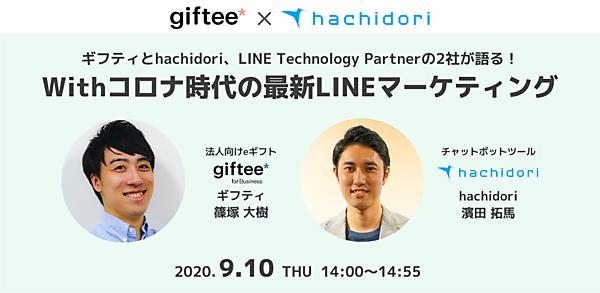 本ウェビナーでは、両社ともにLINE社のTechnology Partnerでもある、法人向けにeギフトを提供する「giftee for Business」、LINE連携のチャットボット開発ツール「hachidori」によるソリューションをご紹介いたします。