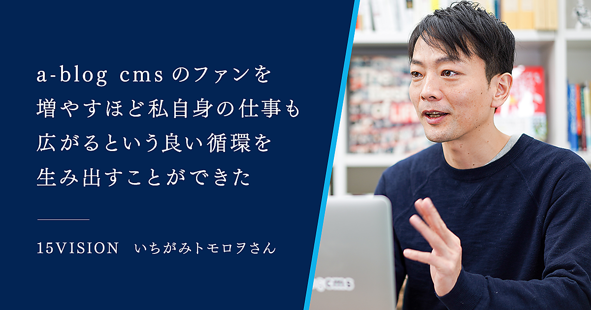 金沢で Web 制作や Web 運用のコンサルティング、アプリの UI 設計などを請け負っている、いちがみトモロヲさん。独立以来、CMS は a-blog cms 一筋で仕事をされているそうです。 前回の笠谷さんに紹介いただき、エバンジェリストとして a-blog cms を広める活動もしていただいているいちがみさんにインタビューしました。
