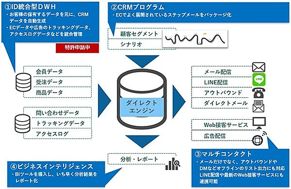 この度、「お客様中心主義」を根幹に持つ両社の思いが一致し、業務提携する運びとなり、2020年9月28日よりお客様の「個に迫る」施策を”簡単”に実践できるCRM※プラットフォーム「ダイレクトエンジン」の販売を開始いたします。