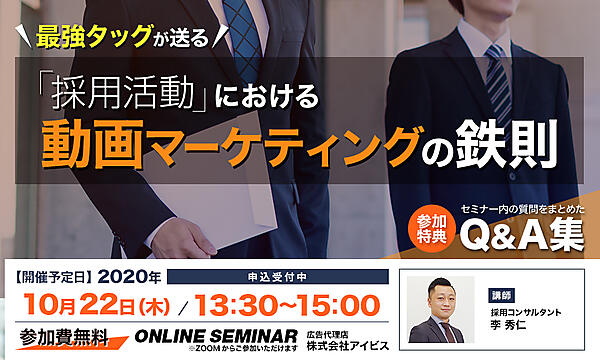 今回のセミナーでは、「採用における」動画マーケティングの鉄則という名の通り、採用活動に動画広告を取り入れることについて説明するセミナーです。