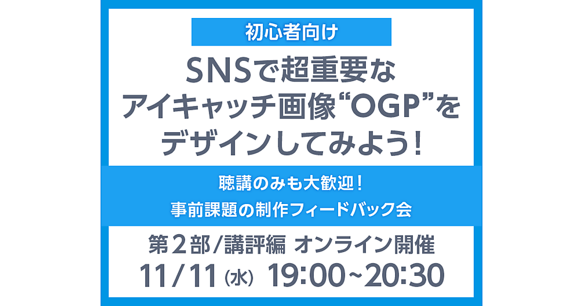 今月のワンゴジュウゴのスキルアップセミナーは、先月開催したOGP制作導入編に続き、聴講のみのフィードバック会を開催します。