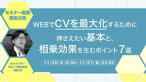 など、おかげさまで大好評をいただきましたので、11/26-27 の2日間限定で当日のセミナー動画を配信いたします。 期間中は何回でもご視聴可能です。前回参加できなかった皆さまもぜひご覧ください。 |