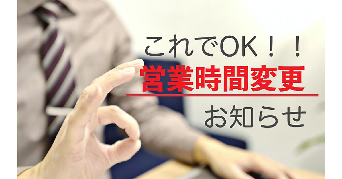 - 営業時間変更のお知らせの例文