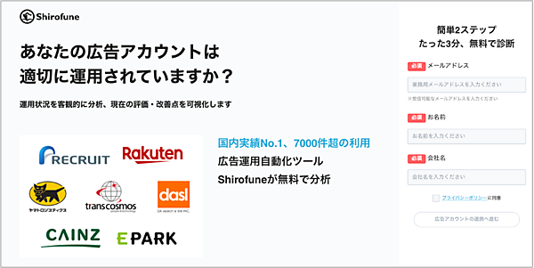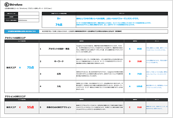 Shirofuneの「アカウントスコア診断機能」詳細はこちら