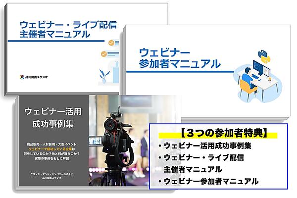 さらにウェビナーを成功に導くための「ウェビナー活用成功事例集」を参加者特典として全てプレゼント。
