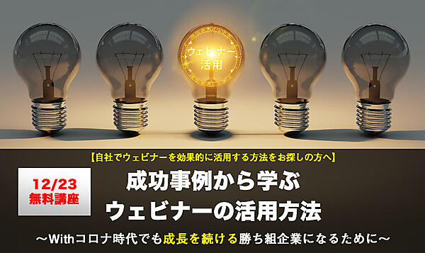 この講座では、競合企業がコロナ禍であらゆる企業活動を制限せざるをえない中、営業・採用・イベントなどをウェビナーに置き換えたことで成長を続けられた企業事例とウェビナー成功のポイントと一緒に解説します。