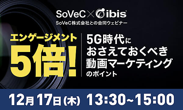 今回のウェビナーは、動画の制作についてSoVeC株式会社が、動画広告について株式会社アイビスが、それぞれの実績と事例をもとに紹介します。動画マーケティング市場動向や求められている理由、効果といった基本的な内容から、優れた動画を作成するチェックリスト、広告戦略の立て方まで、動画マーケティングの全体像が学べます。