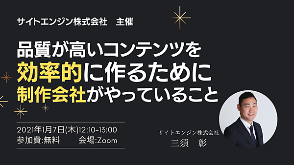 アクセス解析やコンテンツ制作を行うサイトエンジン株式会社では、「改善のタネを社会に届ける」を理念としてWebサイト・オウンドメディア運用に関する正しい情報をお伝えしたいと思い、本セミナーを企画しました。