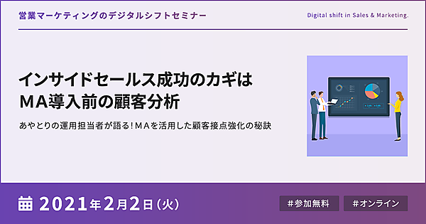無料ウェビナー【インサイドセールス成功のカギはMA導入前の顧客分析】当社のMA運用担当者が語る!顧客接点強化の秘訣