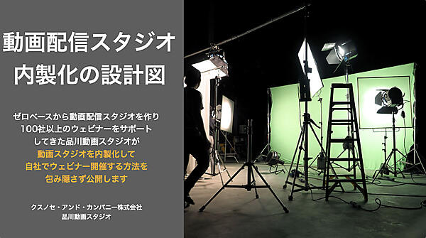 お役立ち資料では、知識・経験ゼロの状態から社内スタジオを構築してきた品川動画スタジオの経験を基に、社内スタジオを構築してウェビナーを内製化する方法を解説しています。