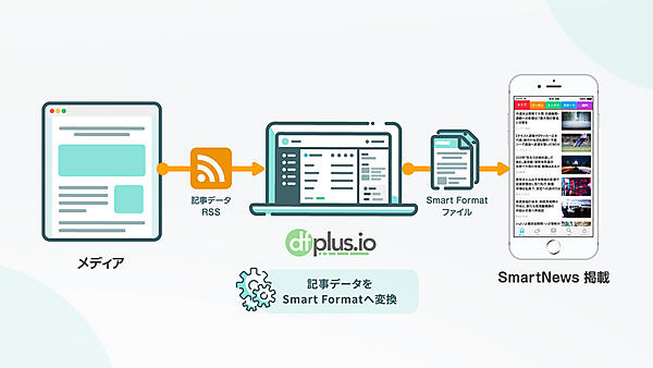 本サービスを利用することで、メディア事業者は、dfplus.io に記事全文の RSS を 取込み、SmartFormat 項目に沿った RSSフィードを出力、HTTPサーバ上にアップロードすることが可能になります。