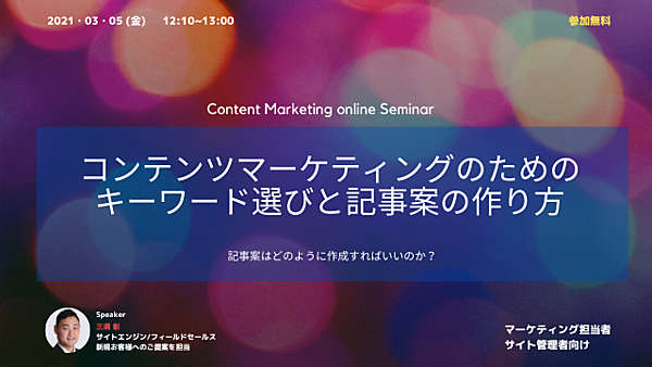 セミナーではキーワードの選び方や記事案作成のコツだけではなく、そうした時間のかかる作業を効率的に行うための無料のツールなどもご紹介します。