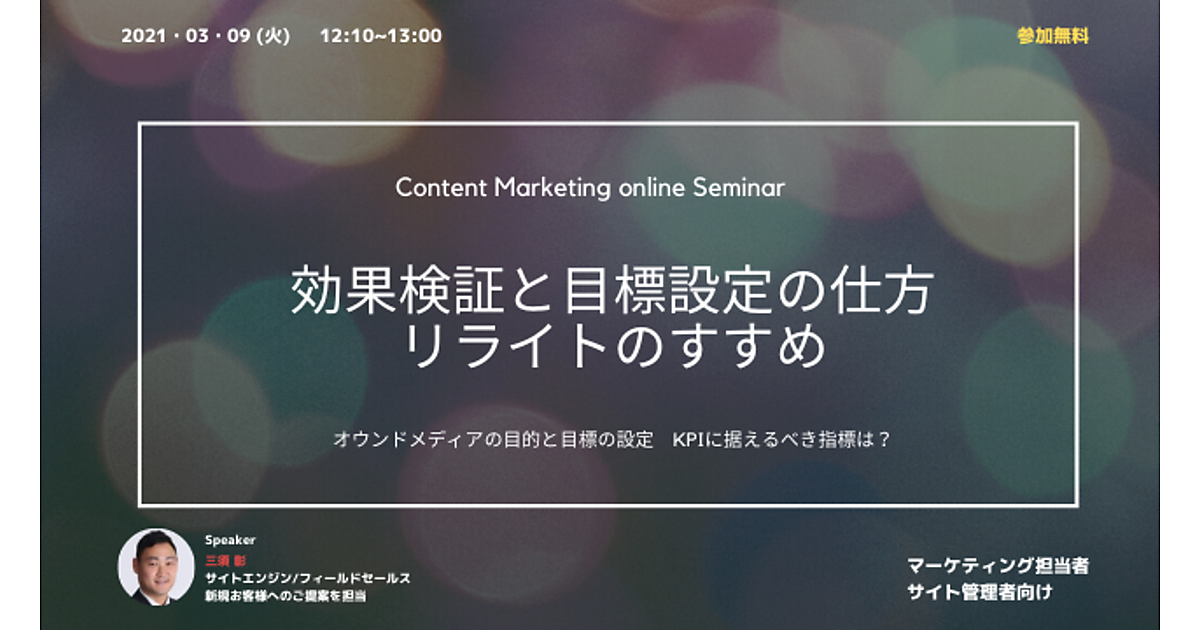コンテンツ制作に行き詰っている、もっと効率的に行いたい、という方はぜひご参加ください。記事の品質を保持するべきなのかを知りたいという方にも、有益な内容となっております。ぜひご参加ください。