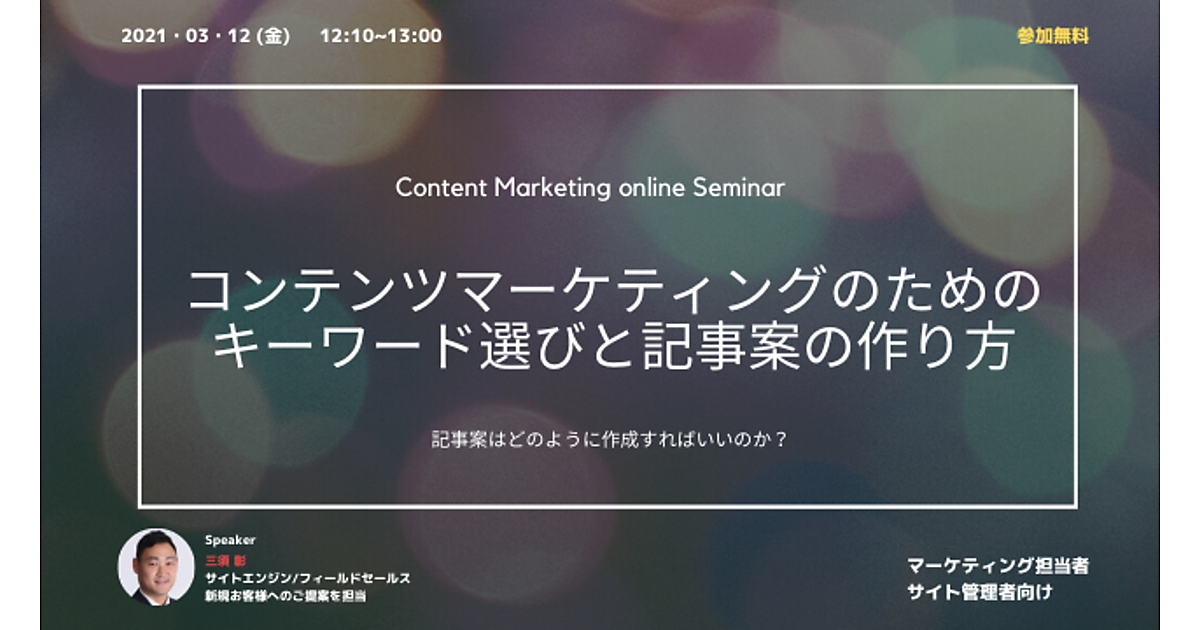 コンテンツ制作に行き詰っている、もっと効率的に行いたい、という方はぜひご参加ください。記事の品質を保持するべきなのかを知りたいという方にも、有益な内容となっております。ぜひご参加ください。