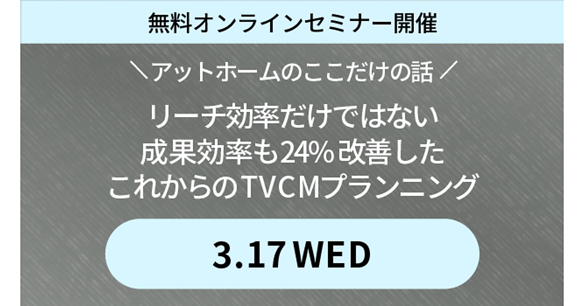 - セミナー名称:アットホームのここだけの話 リーチ効率だけではない成果効率も24%改善したこれからのTVCMプランニング