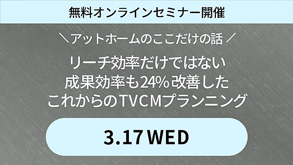 株式会社サイカは、2021年3月17日、無料オンラインセミナー「アットホームのここだけの話 リーチ効率だけではない成果効率も24%改善したこれからのTVCMプランニング」を開催します。