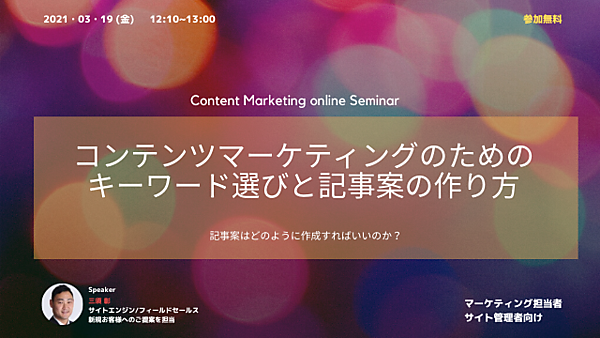 コンテンツ制作に行き詰っている、もっと効率的に行いたい、という方はぜひご参加ください。記事の品質を保持するべきなのかを知りたいという方にも、有益な内容となっております。ぜひご参加ください。