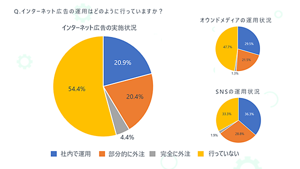 2020年11月に行われたBtoB企業のWebマーケティング実施状況に関する調査では、自社で運用している事業主が20.9%、部分的・完全に外注している事業主が24.8%という結果になりました。