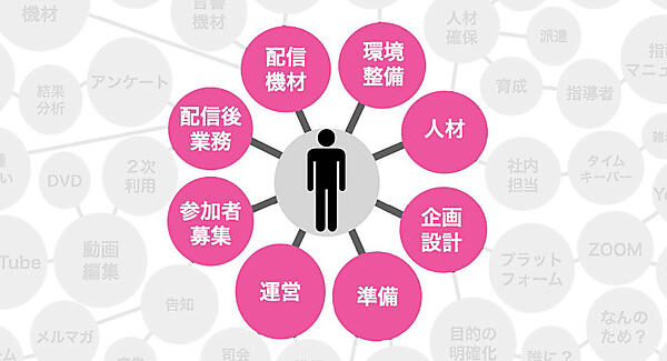 このように、一言でウェビナー開催といってもやるべきことは膨大にあります。しかも、これらを限られた人手と時間、予算の中でやっていく必要もあります。