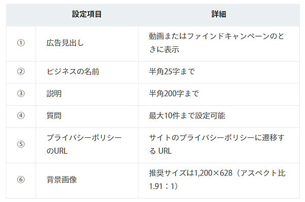 広告の部分の設定ができます。ユーザーがクリックする前に見る部分なので、この表示オプションをクリックすることで何ができるのかをしっかり伝えることが重要になります。