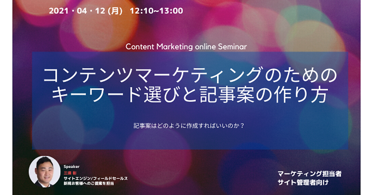 コンテンツ制作に行き詰っている、もっと効率的に行いたい、という方はぜひご参加ください。記事の品質を保持するべきなのかを知りたいという方にも、有益な内容となっております。ぜひご参加ください。