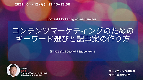 セミナーではキーワードの選び方や記事案作成のコツだけではなく、そうした時間のかかる作業を効率的に行うための無料のツールなどもご紹介します。