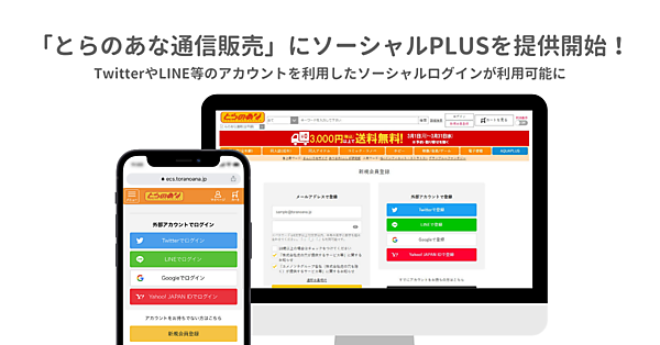 株式会社フィードフォース(所在地:東京都文京区、代表取締役:塚田 耕司、以下「フィードフォース」)は、株式会社虎の穴(所在地:東京都千代田区、代表取締役:吉田 博高、以下「とらのあな」)が運営するECサイト「とらのあな通信販売( https://ecs.toranoana.jp/ )」において、ソーシャルログイン・ID連携サービス「ソーシャルPLUS」を提供開始いたしました。