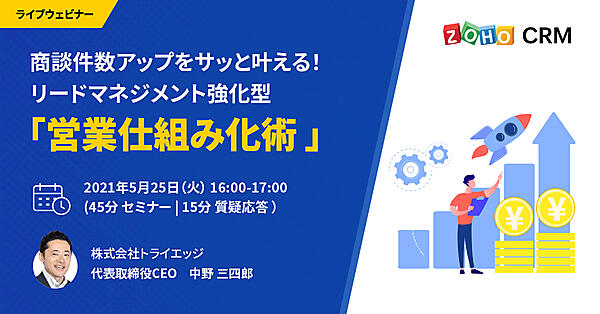 このウェビナーでは、営業組織としておさえておくべき「リードマネジメント」の全体像と、Zoho CRMを活用した仕組み化について解説します。