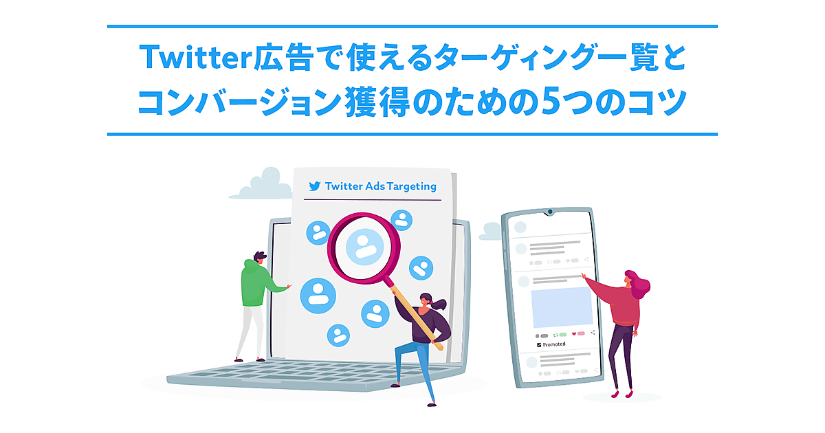 Twitter 広告のターゲティング機能は、認知拡大からコンバージョン獲得まで網羅されており、他の広告媒体にはない独自のターゲティングもあるのが魅力的です。この記事では、そんな Twitter 広告のターゲティングを1つずつ丁寧に解説していきます。