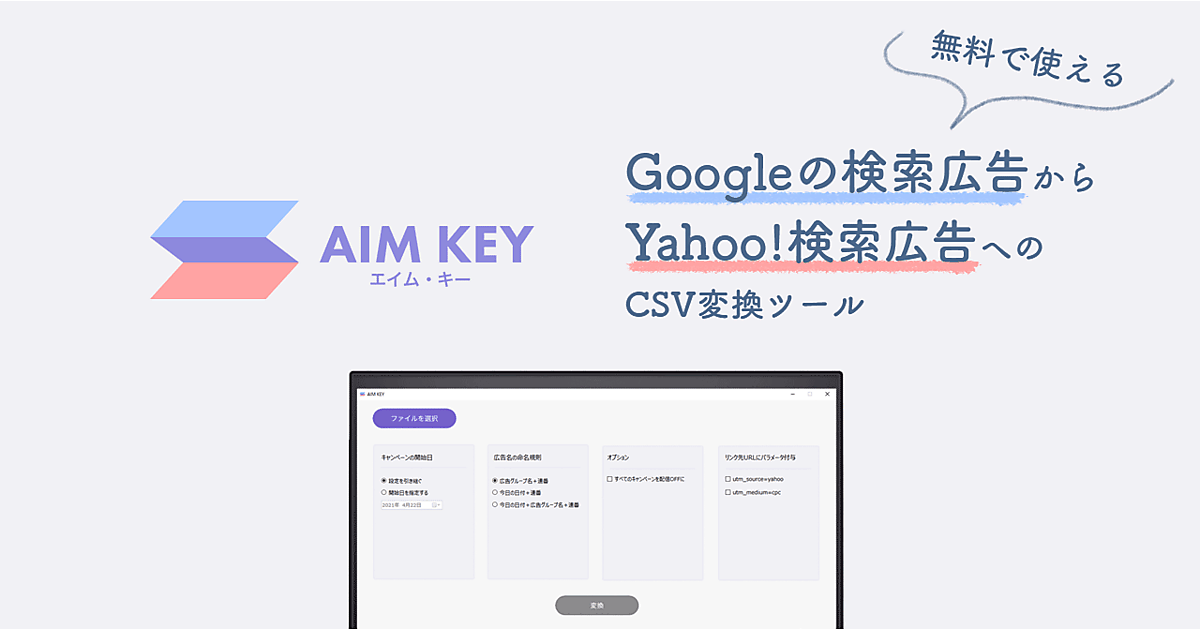 無料で使える、Googleの検索広告からYahoo!検索広告へのCSV変換ツール「AIM KEY(エイム・キー)」 概要から使い方の紹介(ダウンロードもこちらから)