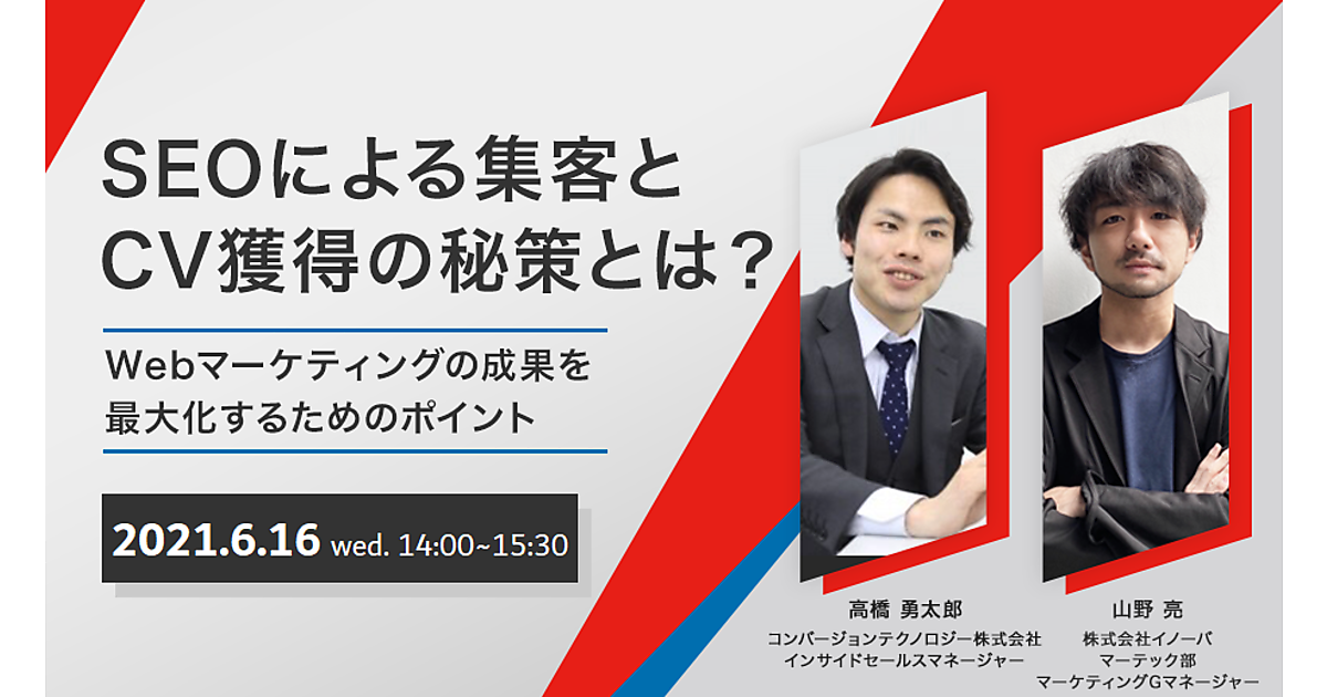 今回のセミナーでは、入り口戦略として重要なSEO対策と、比較検討以降の申し込み・購入において必要不可欠なCVの獲得についてのノウハウをお伝えします。