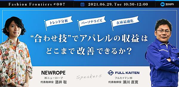 在庫問題に取り組むフルカイテン代表の瀬川氏と、アパレルのトレンド分析やパーソナライズに取り組むニューロープ代表の酒井氏が「現在地」と「未来」を語ります。