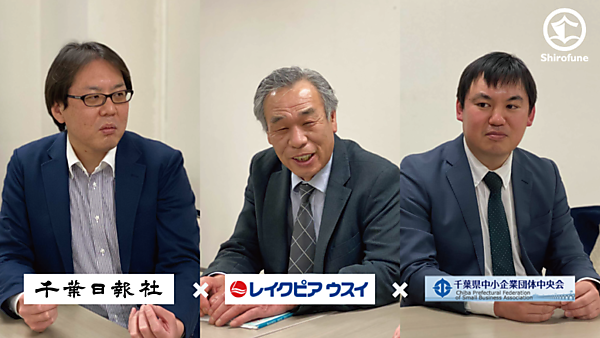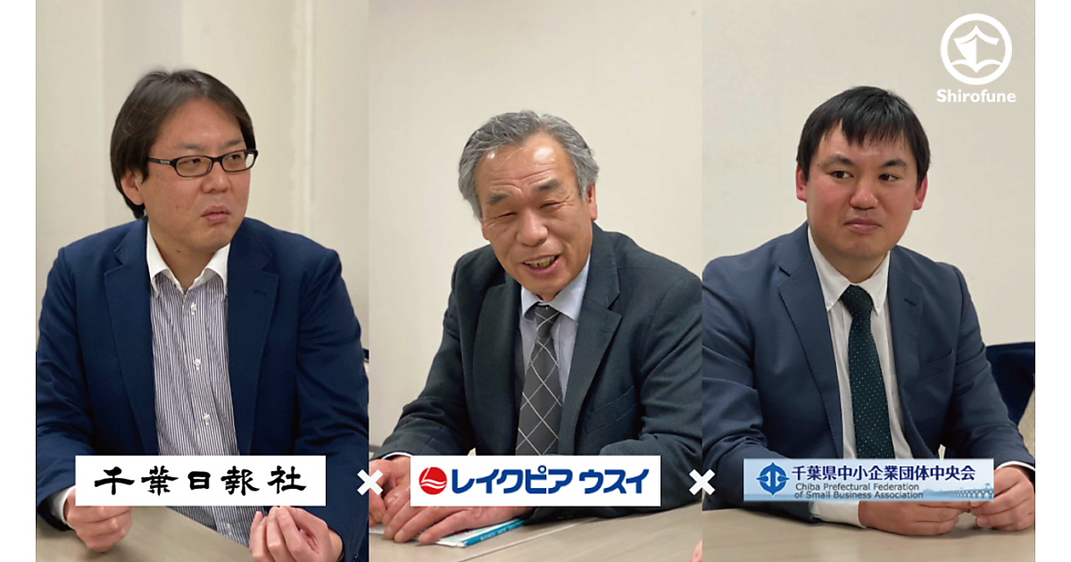 レイクピアウスイを運営する「臼井ショッピングセンター協同組合」の鳥羽理事長、広告主と地域に根ざした新聞社の橋渡し役を担った「千葉県中小企業団体中央会」の菅井氏、Shirofuneを活用し広告運用業務を手がけた「株式会社千葉日報社」の中島氏が一堂に会し、レイクピアウスイのデジタル広告プロジェクトを振り返ります。