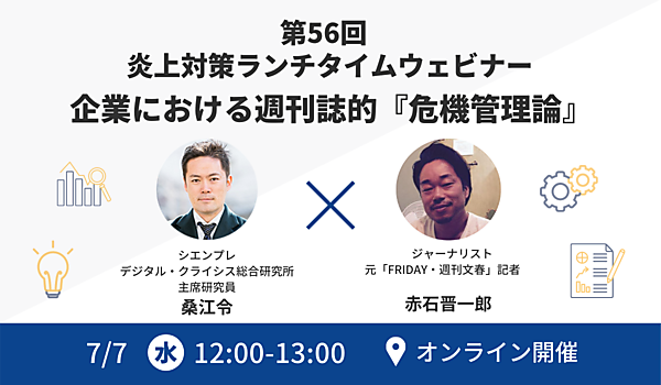「シエンプレ デジタル・クライシス総合研究所」(所長:佐々木寿郎、住所:東京都渋谷区神南1-19-14 クリスタルポイントビル 2F、以下「当研究所」)は、経営者、広報、マーケターの皆様の業務判断の参考となるよう、世の中の炎上事例や神対応事例を分析し、無料セミナーにて情報提供を行っております。