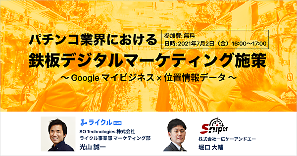 本ウェビナーでは、パチンコホール運営企業のデジタルマーケティング施策を解説いたします。「無料活用できるGoogle マイビジネスを活用して、ユーザーを効率的に誘導するための仕組みづくり」「正確な位置情報データ、年齢・性別などの属性データを掛け合わせた効率的な店舗誘導広告の配信方法」についてをお伝えします。
