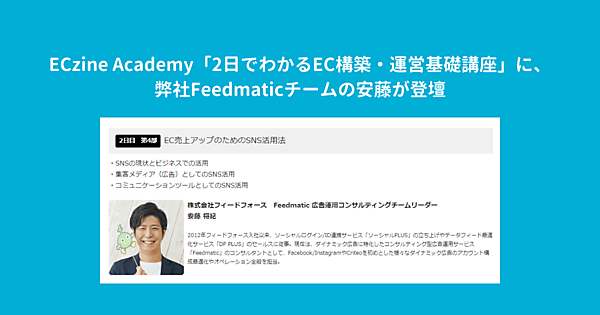 弊社 Feedmatic チームの安藤が、翔泳社主催のECzine Academy「2日でわかるEC構築・運営基礎講座」<オンデマンド>※の2日目第4部に登壇いたしました。