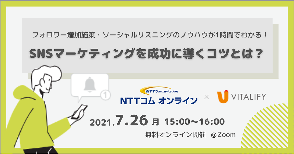 そこで今回は、SNS運用代行サービスを提供し、わずか半年でTwitterフォロワー1万人獲得の実績をもつバイタリフィと、SNSのVOC(Voice of Customer)分析・リスクモニタリングを行うNTTコムオンライン・マーケティング・ソリューションの2社で無料オンラインセミナーを開催いたします。