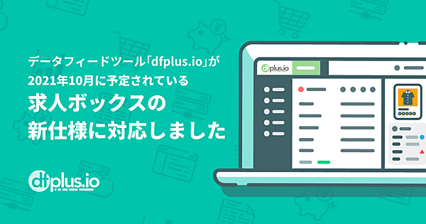 株式会社フィードフォース(所在地:東京都文京区、代表取締役:塚田 耕司、以下「フィードフォース」)が提供するマーケターのためのデータフィード管理ツール「dfplus.io」は、「求人ボックス」(https://求人ボックス.com/)で2021年10月に予定されている仕様変更に対応いたしました。