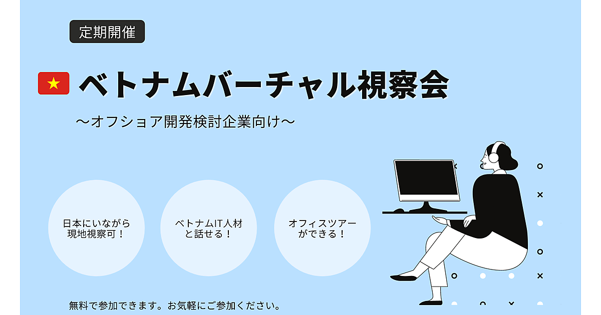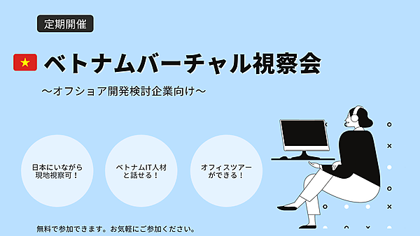 ベトナムオフショア開発のリアルな実情を2部構成でご紹介させていただきます。オフショア開発についていまいちイメージができていない…という方も、本イベントにご参加いただくことで、オフショア開発とは何か?イメージできるようになります。