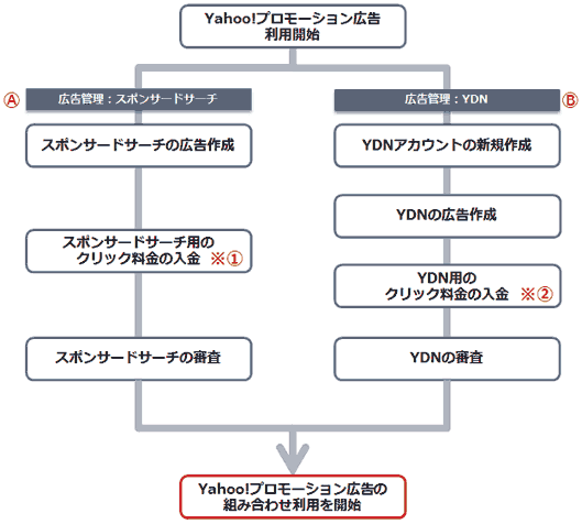 ※①※②:クリック料金は、「広告管理:スポンサードサーチ」と「広告管理:YDN」に、別々に入金します。