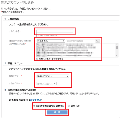 2. 必要項目を入力後、[確認]ボタンを押す