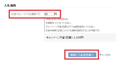 3. 広告グループ作成画面で入札価格を入力
