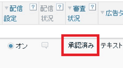 審査状況が「審査中」の場合は、承認済みになるまでしばらくお待ちください。審査には3営業日程度かかることがあります。承認済みになるまでは、こまめに広告管理ツールを確認しましょう。