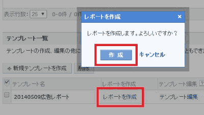 4. 「レポートを作成」をクリックし、ポップアップで「作成」ボタンを押す