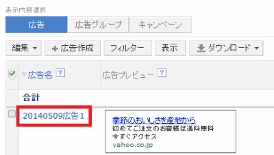 2. 編集したい広告の広告名をクリック