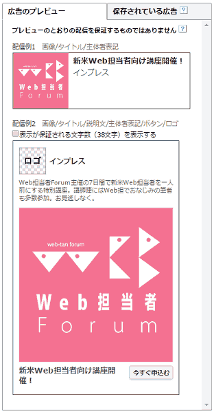 名前のとおり広告枠のサイズは300×250ピクセル固定だが、レイアウトと構成要素を指定できるので、事前にどのような広告が表示されるのか確認できる。